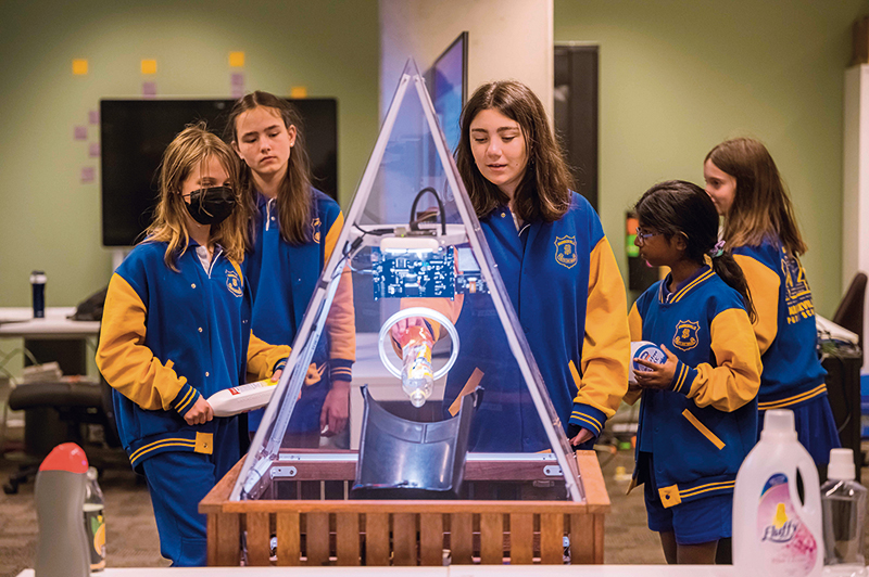 学生在悉尼科技大学体验“智能垃圾桶”技术(2022年8月16日摄) 澳大利亚联邦科学与工业研究组织供图