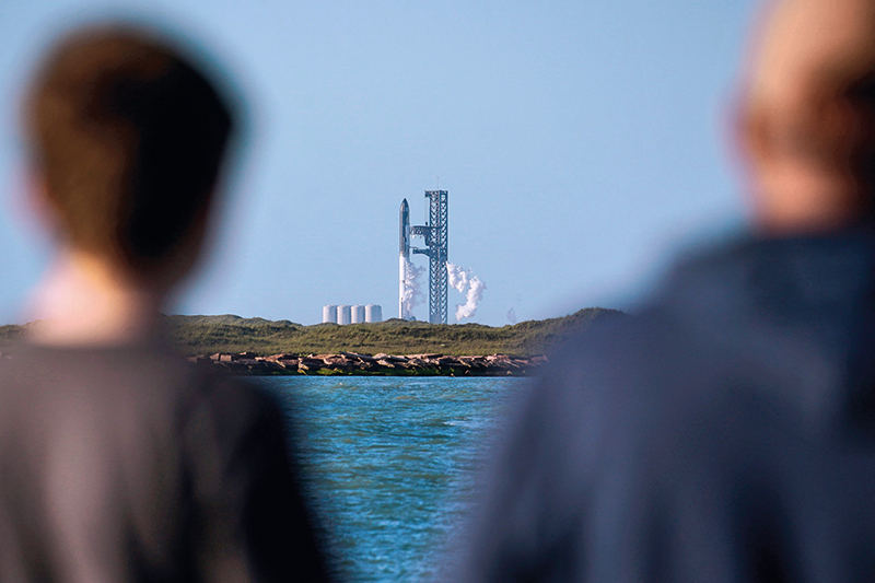 在美国得克萨斯州布朗斯维尔附近,人们等待观看“星舟”重型运载火箭发射(2023年4月17日摄) 新华社/路透